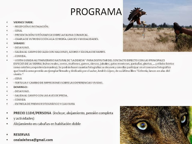 Buenas jornadas de fin de semana, con grandes profesionales de la cetrería y el mundo de los lobos. Con concurso fotográfico y más.